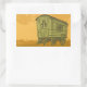 Um desenho a lápis digitalmente editado e colorido de um vagão de caravana cigano