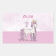 Adesivo Retangular Cavalo Rosa De Aniversário Com 7 De Nome Personali