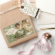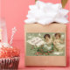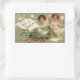 Dois querubs adoráveis estão sentados em uma pilha de grandes papéis brancos; um rodeado de rosa e rosas vermelhas e o outro cherub está segurando um rosa solteiro. Mensagem: Do Seu Namorados está escrito em uma pilha de papéis com pombas brancas voando ao fundo. Imagem de um Cartão-postal de Dia de os namorados Vintage.