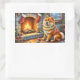 Adesivo Retangular Chow Chow Sitting Fireplace with Christmas Lights
