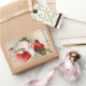 Etiquetas encantadores do natal vintage que caracterizam uma menina bonita do inverno com um chapéu do azevinho, pintado pelo ilustrador americano/artista comercial Ellen Hattie Clapsaddle.