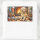 Adesivo Retangular Cockapoo Sitting by Fireplace with Christmas Light