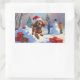Adesivo Retangular Cocker Spaniel correndo em neve com chapéu de Nata