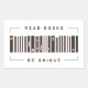 Este design minimalista parece um código de barras padrão, mas quando você olha mais de perto, você verá livros na prateleira. O texto diz: "Ler livros e ser único." Design original de Piotr Kowalczyk © Primeiro publicado: 04.02.2023.
