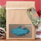 O coelacanto, Latimeria chalumnae, é um peixe de barbatanas lóbias (sarcopterygii) que antes se pensava ter se extinguido no Late Cretaceous, só para ser descoberto por um cientista em um barco de pesca na África em 1938. Uma segunda espécie, Latimeria menadoensis, foi descoberta no final dos anos 1990 na Indonésia. Peixes de barbatanas baixas, como coelacantas e lungstres, são os ancestrais dos tetrapods (anfíbios, répteis, aves e mamíferos). Este produto apresenta um desenho em cartoon de um coelacanto azul, visto em fundo castanho.