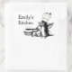 Ilustração adorável de um cozinhar de coelho sobre um fogão com uma torta recém-assada no fundo. Excelente de personalizar para um chef.