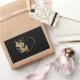 Dourada estrutura em forma de coração, decorada com ouro, joias e borboletas brancas sobre fundo preto.