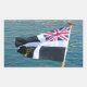 Foto original do artista Darren Lee Walter de uma placa Cornish Ensign voando na parte de trás de um barco.