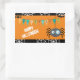 Este adesivo para as crianças apresenta uma aranha não assustadora pendurada pelo seu fio num fundo laranja do Dia das Bruxas. Uma faixa que diz "Trick or Tratat" é carregada por dois morcegos pretos. O topo e o fundo têm uma borda de aranha. Bonita, especialmente para crianças! *O Clip art usado neste design é protegido por direitos autorais pela Encore Software, Inc., que permite o uso a seus licenciadores. Todos os direitos reservados.