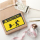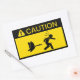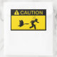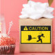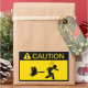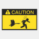 Sinal de precaução amarelo e preto com um ganso perseguindo uma figura de palito.