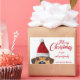 Adesivo Retangular Curioso Cachorro Engraçado com Papai Noel