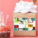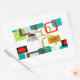 Design abstrato moderno do século médio em cores Teal, vermelha, dourada, preta e verde limão. Artista reproduziu design baseado em uma amostra de tecido da era atômica.