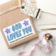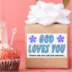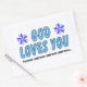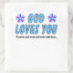 Deus te ama para sempre e sempre... Esta é uma bela imagem cristã de um excelente que diz escrito com letras azuis e contorno preto. Há duas flores azuis e roxas no design. Design de propriedade por Diligent Heart