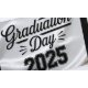 Dia de graduação 2025 em preto e branco sobre fundo branco de seda, tipografia elegante, tema celebratório Stickers.