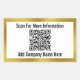 Você pode substituir a imagem de exibição pelo arquivo do seu código QR. Há duas linhas de texto de exibição em preto que você pode editar para mostrar uma mensagem personalizada. Estes adesivos elegantes têm texto preto num retângulo branco. A borda de ouro falso (e não folha) é uma renderização artística.