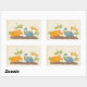 Etiquetas bonitas com um design bonitinho com 4 dinossauros. 2 estão voando e 2 estão no chão. Criado com aquarelas.
