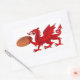 Ilustração do dragão galês segurando um adesivo de râguebi