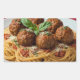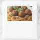 Um prato de esparguete e almôndegas com queijo parmesão em cima.