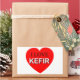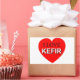 Eu adoro kefir. O Kefir é uma bebida probiótica natural feita a partir do leite. Imagem do coração vermelho com texto.