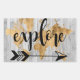Um design bonitinho com uma frase de texto e um mapa de ouro do mundo sobre um fundo de cinza. Artista: Studio W