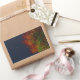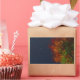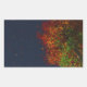 Olhando para os galhos de uma torre no outono. As folhas em queda de burgundy, vermelha, ouro, laranja, amarela e azul brilham contra o céu azul profundo.