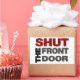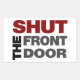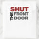 Cala-te! Cala a boca! Cala a tua cara... todos eles seriam rudes, por isso, diz o melhor possível com esta camiseta engraçada "Fechar a Porta da Frente". Grande, corajoso, em seu rosto, letras de blocos em cor vermelha profunda, cinza e preta, formatadas em forma quadrada para passar a mensagem em alto e bom som.