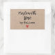 Um adesivo personalizado de retângulo "feito com amor" com uma fonte desenhada à mão sobre um fundo kraft. Faça-o seu adicionando seu próprio nome. Um bonito toque final para todas as suas peças feitas à mão ou para casa fez presentes. Projetado para você pelo Blackberry Boulevard.
