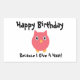 Este adesivo adorável tem uma coruja rosa e tem texto personalizável. Atualmente diz: "Feliz Aniversário porque dou uma queca!" mas você pode adicionar sua própria mensagem! Faz uma etiqueta de presente de excelente! Ou usá-lo para selar um envelope!