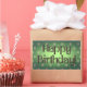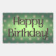Adesivo Retangular Feliz Aniversário Marrom Texto Bolinhas Verde Bkgr