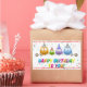 Celebração de aniversário, Corujas de aniversário vestindo chapéus de aniversário, cartões de aniversários coloridos e festivos.