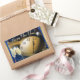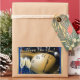 Um adesivo retangular com a imagem de um relógio com anéis de Saturno que está prestes a atingir doze, e dois copos de champanhe sobre um fundo de confete azul e preto. Consulte cartão de saudação de 5" x 7", convite de 11" x 8,5" e papel de embalagem. Veja a coleção inteira do New Year Sticker na categoria CARDS & STICKERS na seção HOLIDAYS.