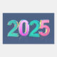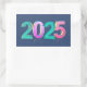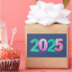 Feliz ano novo 2025, imagem conceitual com números de vidro coloridos sobre fundo azul brilhante