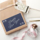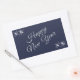 Adesivo retangular de Feliz ano novo moderno e elegante com faíscas brancas sobre fundo azul marinho e script manuscrito de tendência. Simples adesivo para desejar aos seus amigos e feliz ano novo familiar. Você pode alterar o texto se quiser.