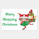 Este é um adesivo fofo para usar durante a temporada de Férias! Apresenta uma imagem colorida de uma mulher nublada vermelha e verde e carregando de uma pilha de presentes de Natal brilhantemente embrulhados. O texto em verde brilhante diz Feliz Comprando Natal. Bonita! *Obrigados para a Clipart Real Deal para o cliente usado para criar este design.