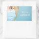 Avise a qualquer médico que são apreciados com esta fotografia de uma médica em uma máscara para dizer Feliz Dia dos Médicos.