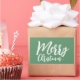 Adesivo Retangular Feliz Natal Simples Girly White Script Verde
