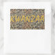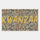 Um abstrato gráfico, parecido com padrões de arte asteca, combina uma mistura deslumbrante de, laranja, vermelha, amarela, esticada, azul e preto com um Cartões de natal Kwanzaa.