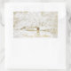 Uma cena digitalizada, brilhando, de uma foto, de uma árvore, com ramificações, com neve, no chão, no porta-malas, no meio de uma camada coberta de neve, dourada na paisagem, árvores, no fundo, e saudação de Natal, mostrada em, dourada, fonte.