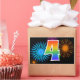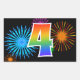 Adesivo Retangular Fireworks divertido + Padrão arco-íris "4" Número