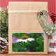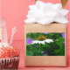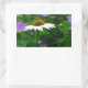 Adesivo Retangular Flor de Cone branca, flores roxas e mariposas