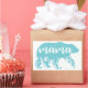 Mantenha a silhueta em azul-turquesa com impressão floral e texto com a menção "Mamã".
