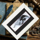 Dragão tribal preto com pano de fundo de cinza azul com pequenas flores vermelhas e borda vermelha