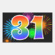 Este design de adesivo vibrante e divertido apresenta um padrão colorido inspirado em fogos de artifício celebratórios, junto com o número "31" tendo um padrão multicolorido de gradiente, como um fundo preto colorido. Os adesivos como este podem ser dados como um pequeno presente ao comemorar o trigésimo primeiro aniversário de alguém, ou talvez o trigésimo primeiro aniversário de casamento de um casal, ou qualquer outro evento do dia 31. [~Z0000324]