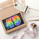 Este divertido e vibrante design de adesivo apresenta um padrão colorido inspirado em fogos de artifício comemorativos, juntamente com o número "49" tendo um padrão de gradiente inspirado em arco-íris multicolorido, sobre um fundo de cor preta. Adesivos como este podem ser usados em uma festa comemorativa de aniversário de 49 anos de alguém, ou talvez para o aniversário de casamento de 49 anos de um casal, ou algum outro evento de número 49.