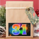 Este divertido e vibrante design de adesivo apresenta um padrão colorido inspirado em fogos de artifício comemorativos, juntamente com o número "31" tendo um padrão de gradiente multicolorido semelhante a um arco-íris, sobre um fundo de cor preta. Adesivos como este podem ser dados como um pequeno presente enquanto se comemora o trigésimo primeiro aniversário de alguém, ou talvez para o trigésimo primeiro aniversário de casamento de um casal, ou algum outro evento de 31º.