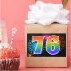 Este divertido e vibrante design de adesivo apresenta um padrão colorido inspirado em fogos de artifício comemorativos, juntamente com o número "76" apresentando um padrão de gradiente inspirado em arco-íris multicolorido, sobre um fundo de cor preta. Adesivos como este poderiam ser usados em uma festa que comemorasse o septuagésimo sexto aniversário de alguém, ou talvez para o septuagésimo sexto aniversário de casamento de um casal, ou algum outro evento de número 76. [~Z0000324]