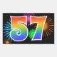 Este design de adesivo divertido e vibrante apresenta um padrão inspirado em fogos de artifício comemorativos coloridos, juntamente com o número "57" apresentando um padrão de gradiente inspirado em arco-íris multicolorido, em um fundo preto. Adesivos como este podem ser usados em uma festa comemorando o aniversário de cinquenta e sete anos de alguém, ou talvez para o aniversário de casamento de cinquenta e sete anos de um casal, ou algum outro evento de 57º. [~Z0000324]