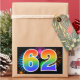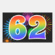 Este design de adesivo divertido e vibrante apresenta um padrão colorido inspirado em fogos de artifício comemorativos, junto com o número "62" tendo um padrão de gradiente de arco-íris multicolorido, em um fundo de cor preta. Adesivos como este podem ser dados como um pequeno presente ao comemorar o sexagésimo segundo aniversário de alguém, ou talvez para o aniversário de casamento de sessenta e dois anos de um casal, ou algum outro evento de 62º. [~Z0000324]