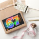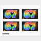 Este divertido e vibrante design de adesivo apresenta um padrão colorido inspirado em fogos de artifício comemorativos, juntamente com o número "67" apresentando um padrão de gradiente multicolorido semelhante a um arco-íris, sobre um fundo preto. Adesivos como este podem ser dados como um pequeno presente enquanto se comemora o aniversário de sessenta e sete anos de alguém, ou talvez para o aniversário de casamento de sessenta e sete anos de um casal, ou algum outro evento de 67º. [~Z0000324]