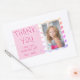 Adesivo Retangular Foto de Aniversário da Rapariga de Ondas Rosa Obri
